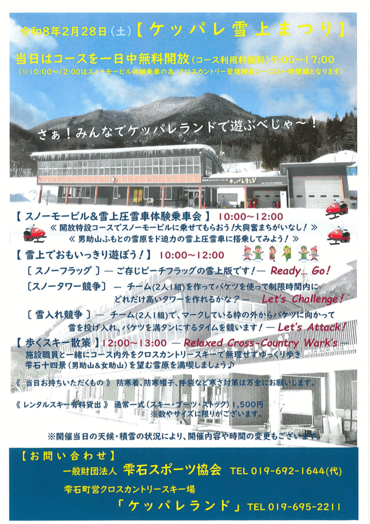 2月28日(土)ケッパレランドで雪あそびを思いきり楽しめる「ケッパレ雪上まつり」を開催します。